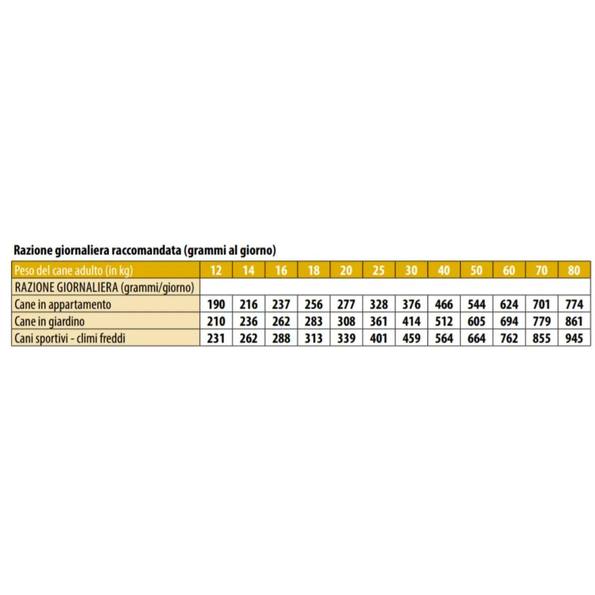 Somministrare la quantità indicata sulla confezione in base al peso e all’attività del cane.