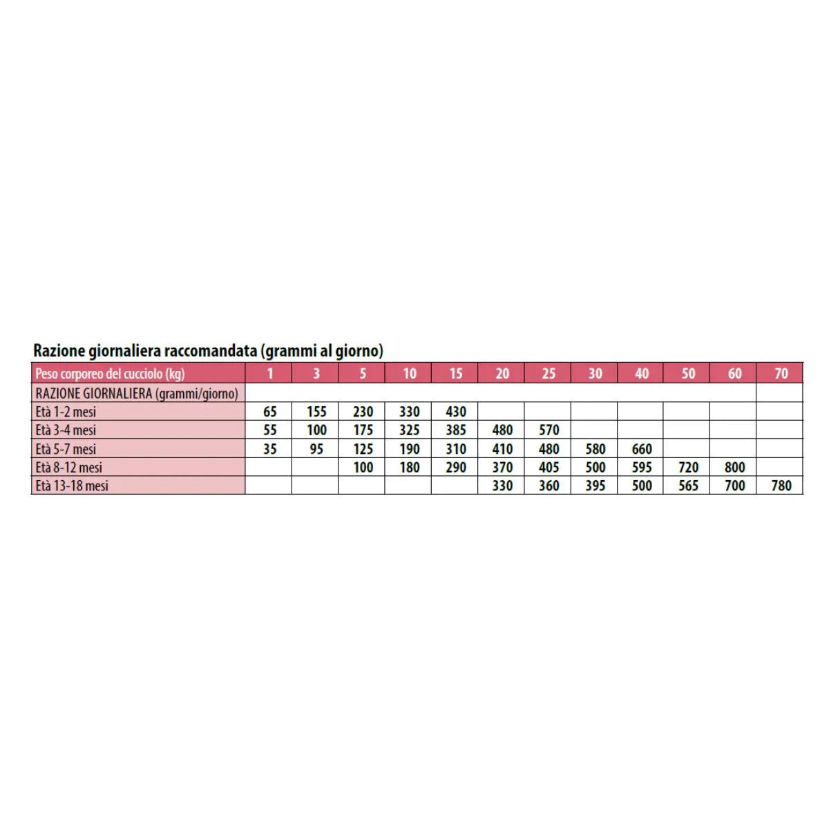 Somministrare la quantità indicata sulla confezione in base all’età e al peso del cucciolo.